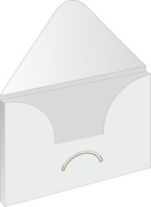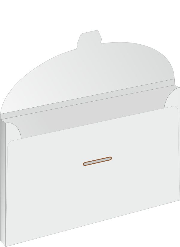 The signature locking slot designed by nPack is typically used for small capacity envelopes. It features an arched opening into which a flap of suitable shape is inserted. The clasp-like closing element is used for envelopes of any apacity.